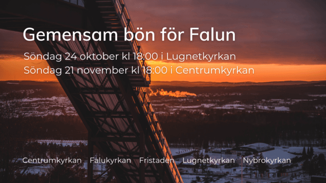 Under hösten hålls vid tre tillfällen ekumenisk bön i Falun. Idag hålls bönen i Lugnetkyrkan. Nästa gång hålls bönen i Nybrokyrkan, 24 november.